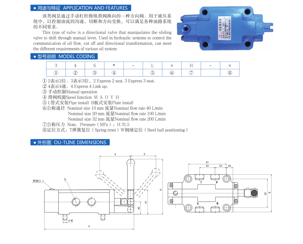34S*-L/B-H上海型31.5MPa系列手動(dòng)換向閥