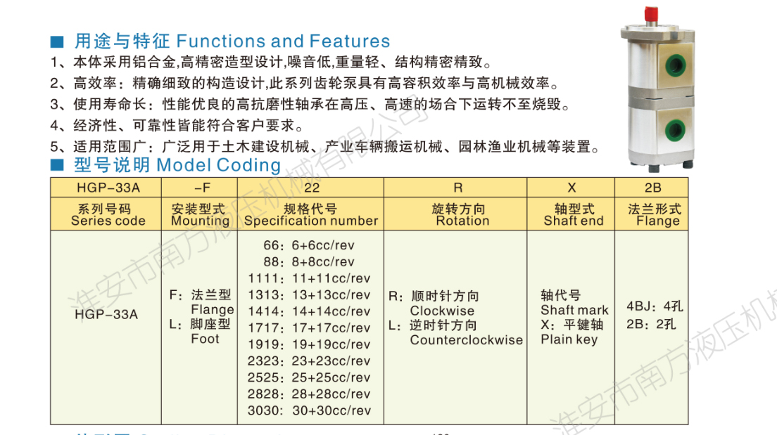 HGP-33A系列雙聯(lián)齒輪泵